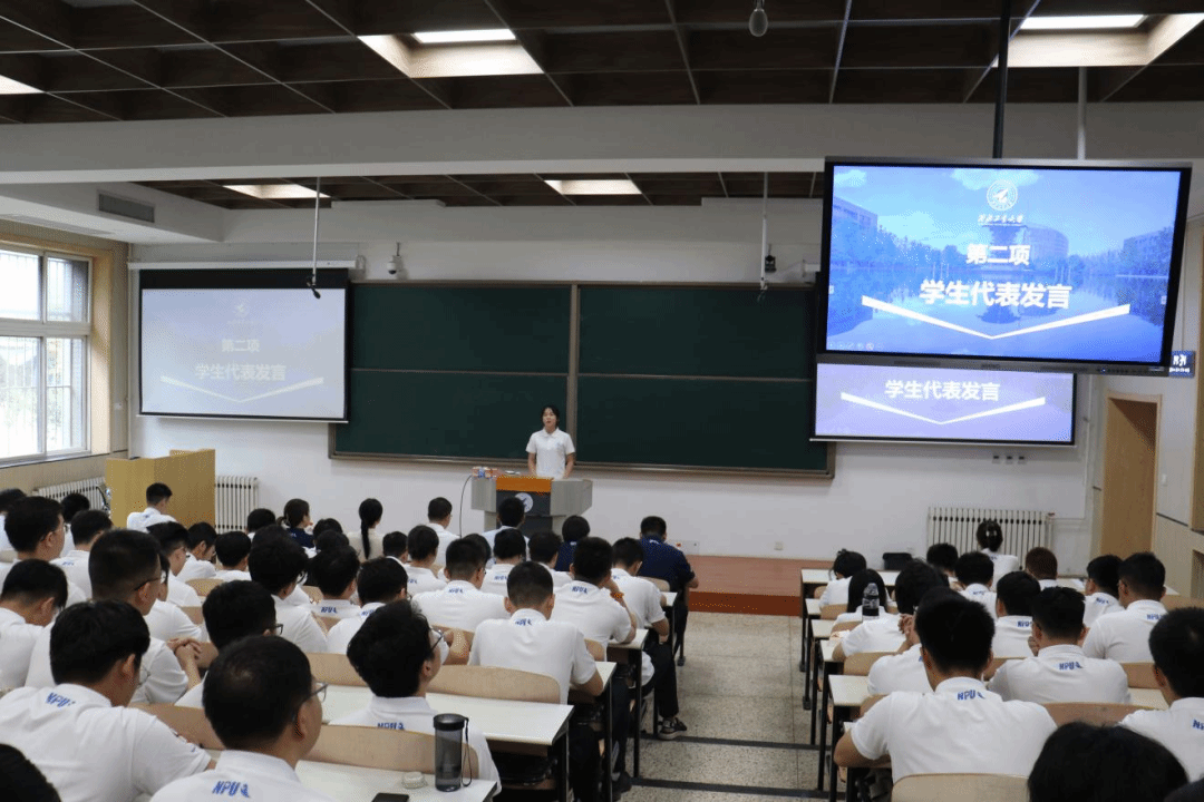 学生代表胡佳宁同学随后发言,分享了她对这次访学实习的期待与决心,她认为,此次机会不仅是一次严峻的挑战,更是一次宝贵的机遇。她呼吁大家以更加饱满的热情、更加积极的态度,全身心地投入到这一过程中,全力以赴,展现出属于我们西工大学子的风采。