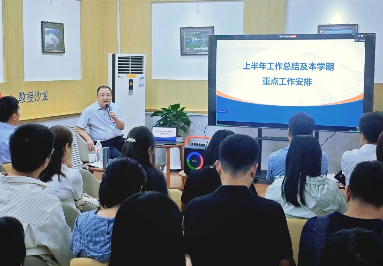 随后,学院各分管领导依次汇报工作。副院长马春燕就教学工作进行了梳理,通报了2025年教材建设、教学成果奖、高水平大赛等“目标责任制”完成情况,从智慧课程建设、教材建设、名师培育、竞赛、思政课程等方面,提出了一系列切实可行的推进计划;副院长郭培荣全面总结了上半年科研工作取得的突破与进展,明确了下半年学院科研攻关“揭榜挂帅”项目推进、科研团队(小组)建设、科研项目申报、保密管理、安全生产工作等重点工作;党委副书记陈博聚焦党建与学生工作,回顾了党建、创新竞赛、共青团工作、学生深造、就业工作、河北招生工作等方面的工作成效,并对新学期重点任务作出了部署;院长助理张凯龙围绕国际化推进工作,总结了引智资源平台建设、优质海外教师引进、国际联合培养、学生出国境交流等方面的成果,并明确了下一步拓展国际合作的目标与路径;办公室主任王宇英就人事与人才工作汇报了人才引进、青年教师培育、人事管理等方面的进展,对下半年人才项目申报、制度与平台建设等重点工作作出了安排。