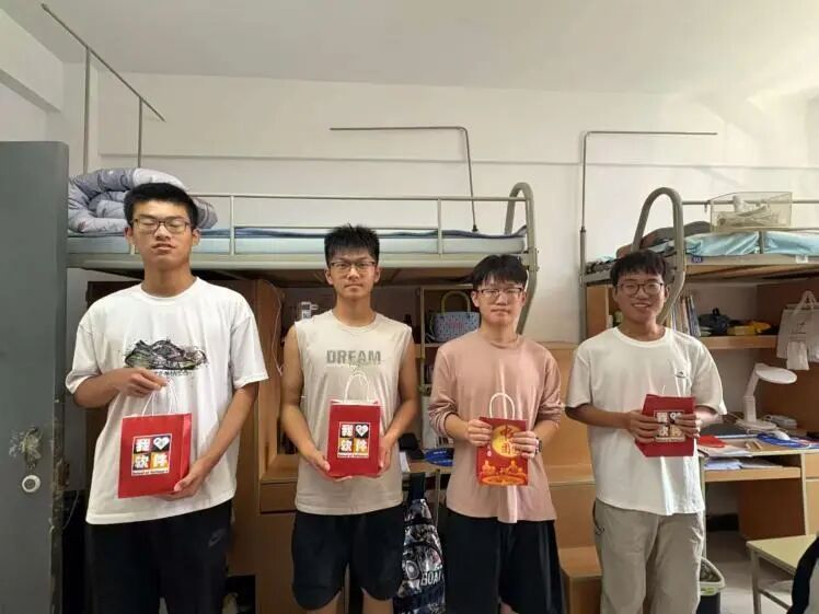 院长郑江滨、党委书记李晗、副院长马春燕、副书记陈博一行,共同走访了研究生与本科生宿舍,亲切看望2025级新生。学校党委学生工作部为每位学生准备了月饼,学院也特别制作了具有91自拍