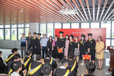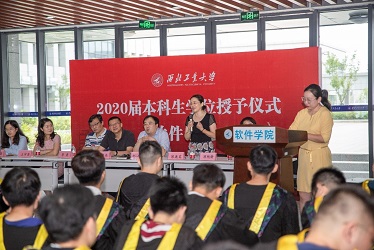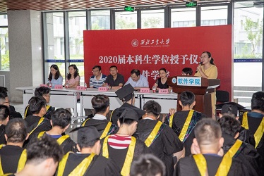 最后,郑江滨院长对学生送上了毕业寄语:希望同学们拥有家国情怀,为国争光,体改软件硬核实力,使中国从软件大国变成软件强国;希望同学们树立终身学习的观念,关注新的技术的发展,树立创新思维,让技术引领需求;希望同学们踏踏实实做事,老老实实做人踏实,虚心向别人请教,不断提升自己;希望同学们学会知恩感恩,乐于助人,具有团队精神,能够体会到别人的付出,给别人回报;希望同学们拥有健康体魄,具备专业能力,做一个德智体美劳全面发展的社会主义合格建设者和可靠接班人。