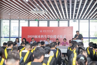 2020届本科生毕业生毕业典礼在长安校区启翔楼成功举办。本次典礼由学院党委副书记张琨主持,学院党委书记陈洪亮、院长郑江滨、班主任李勇、办公室主任王宇英、本科教学办蔡康英、郭艳静、辅导员齐春晓老师出席,全体2016级本科生共同参加,典礼在激昂的国歌声中开起。