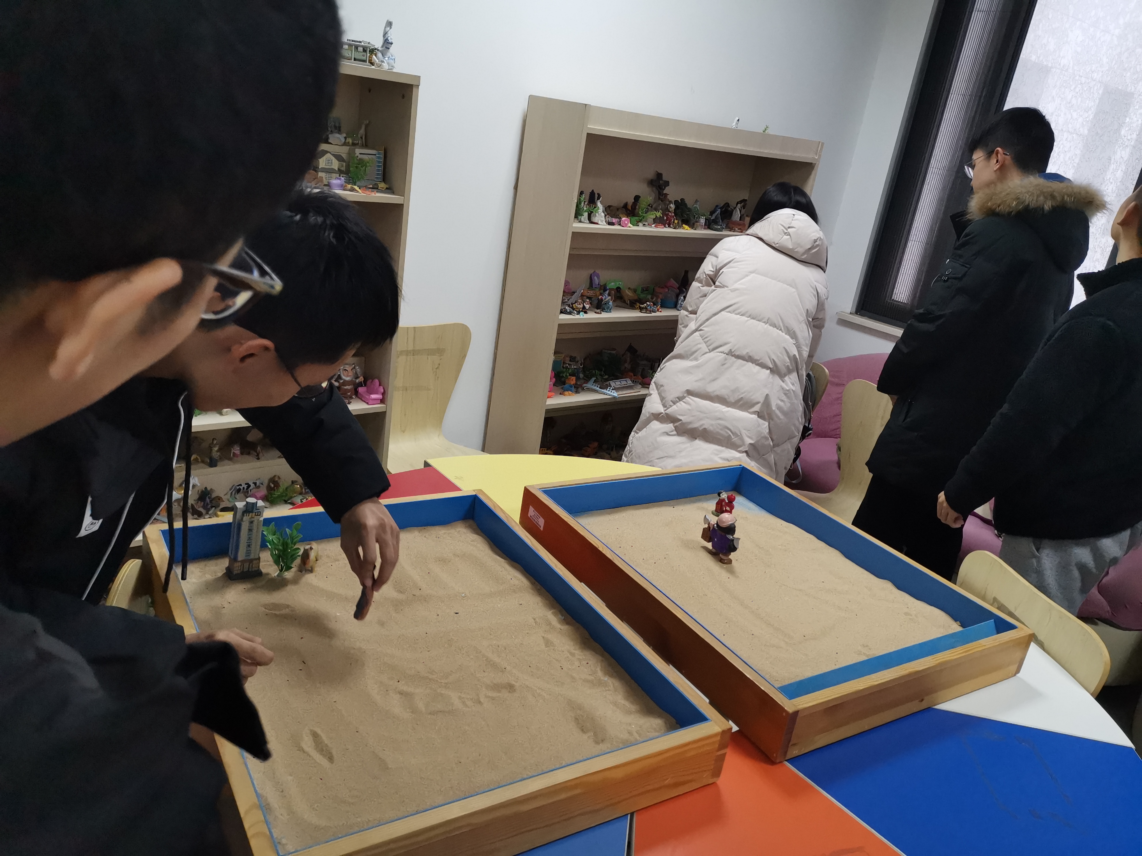 在长安校区启翔楼218心理咨询室举行了2019级心理委员团体辅导沙盘体验活动,91自拍