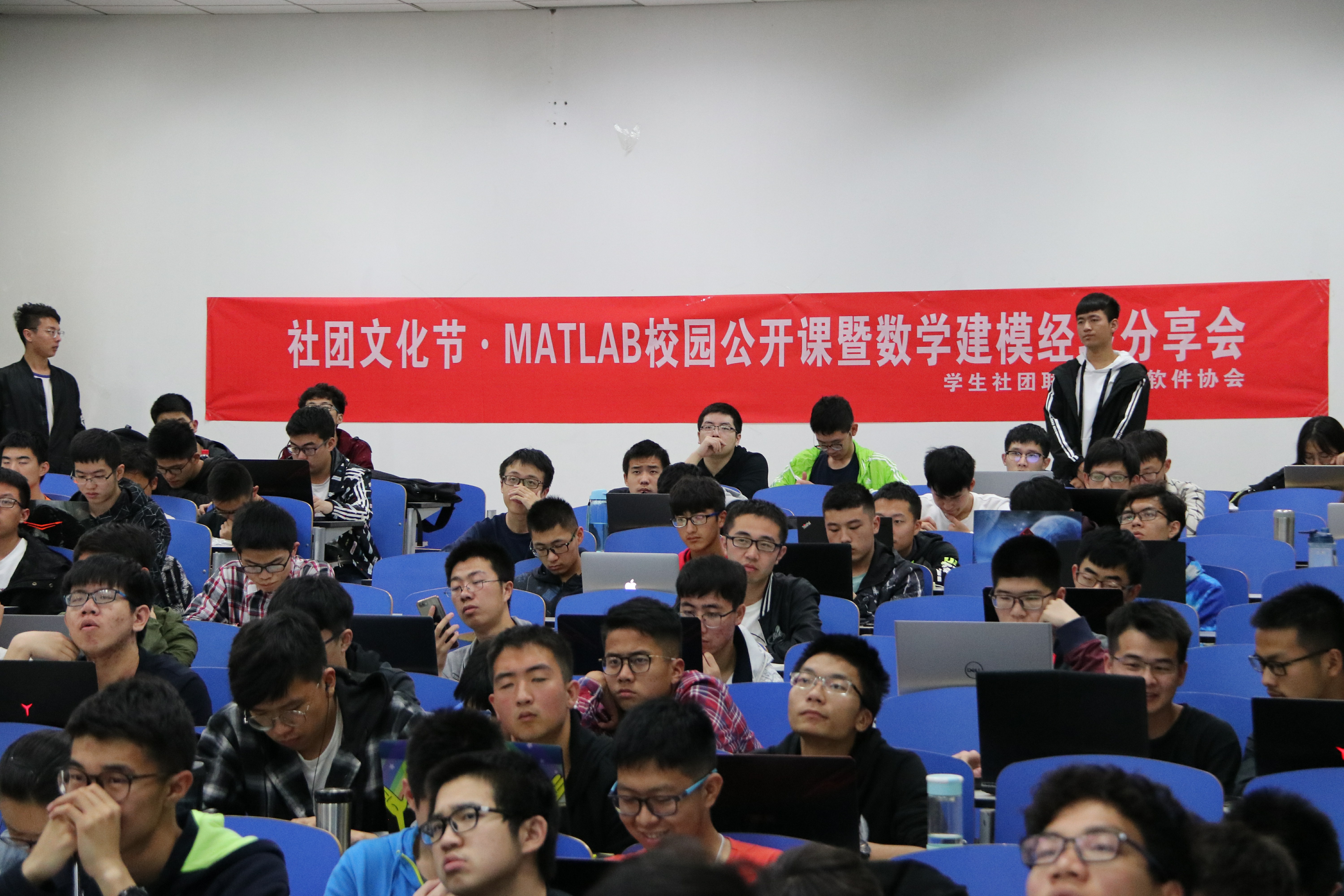 为迎接我校五一数模节,提升学生参与比赛积极性,2019年4月20日,软件协会与学生社团联合会于教学东楼D座205举办的MATLAB校园公开课。本次课程的三位主讲人分别为:软件协会组织部部长田皓哲、数模协会会长李永奇及获得全国大学生数学建模竞赛一等奖的黄雅莹同学。在前期各个宣传工作的铺垫下,本次公开课实际参与人数超出预期人数。