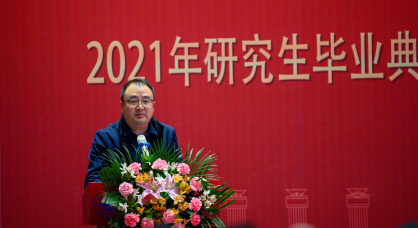 院长郑江滨,党委副书记张琨,副院长郭培荣,2021届研究生导师代表武君胜,青年教师代表许军毅,研究生教学办公室林丽明、段秀娟、张桐,研究生辅导员茹丽媛及2021届研究生参加典礼。毕业典礼由学院党委副书记张琨主持。