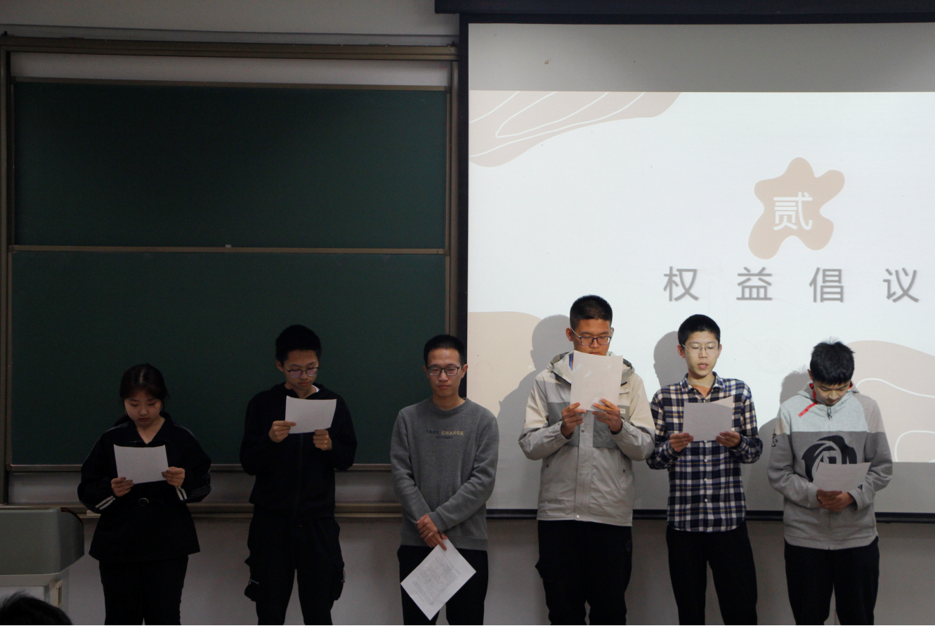 学生会权益部部长宋晋为大家科普大学生关于权益及维权的基本知识,介绍维权渠道,讲解维权方法,让每位同学深入了解。