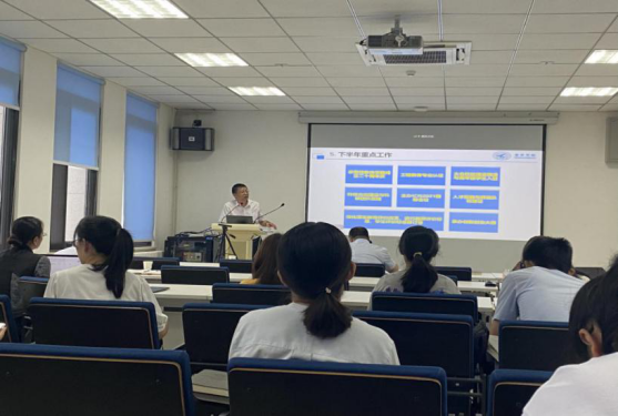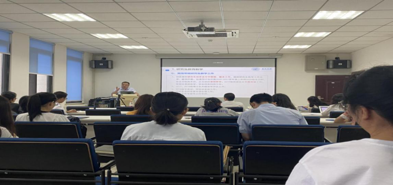 郑江滨院长介绍了学院研究生教育教学、国际化工作和师资队伍建设几个方面的工作进展,对学院未来在培养高质量研究生提出了充分期望,提出我们要致力于培养国之大器、有用之才,并进一步把学院下半年的8项重点工作做了详细说明。