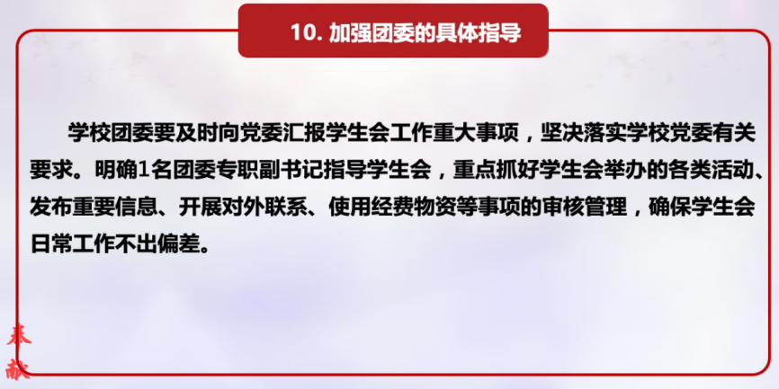 会议进一步对开学以来的工作进行总结分析,从九月份的开学迎新、破冰活动到十月份的学术月做了全面的总结,对工作中存在的问题一一做出反省并提出解决方案,并对十月份即将举办的篮球赛做了初步的计划。