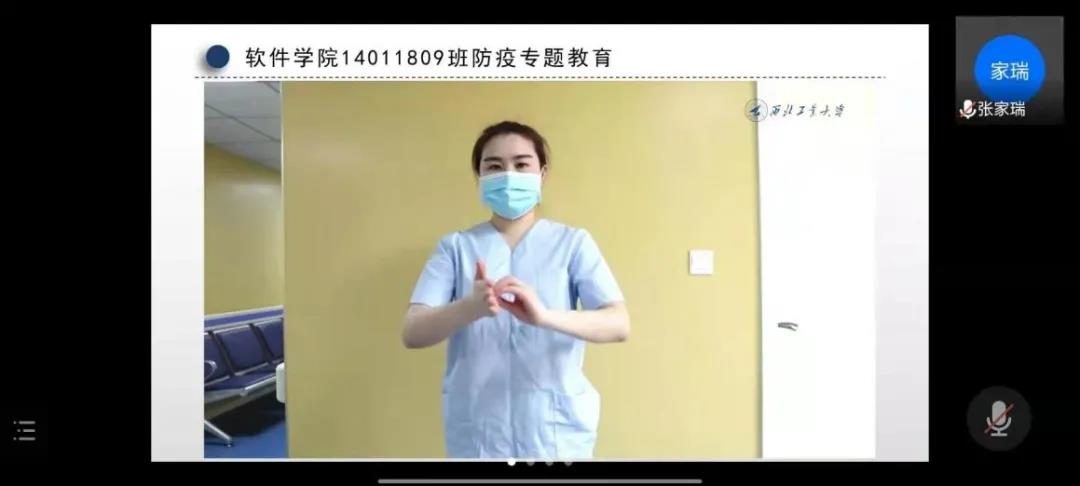 2018级各班通过线上会议与视频讲解方式结合,具体地为同学们讲解了病毒的传播途径,并在此基础上提出如何做好手部消毒的问题,通过视频演示,同学们对此有了更加详细的认识,在返乡途中能够正确地做好消毒等防护工作。