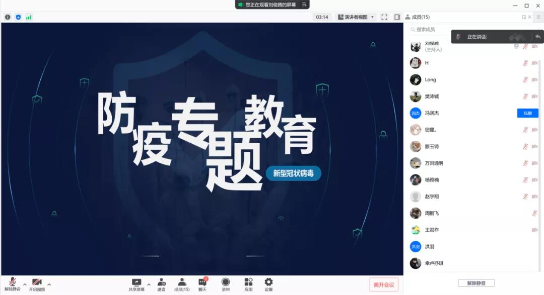14011809班的同学们集体观看了新冠肺炎如何传播的科普视频,在观看视频期间,同学们认真学习并在视频结束后,纷纷开麦对此话题进行讨论,并提出多种如何做到科学防疫的方法。