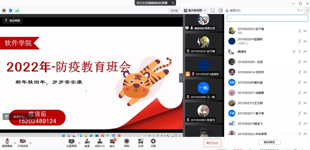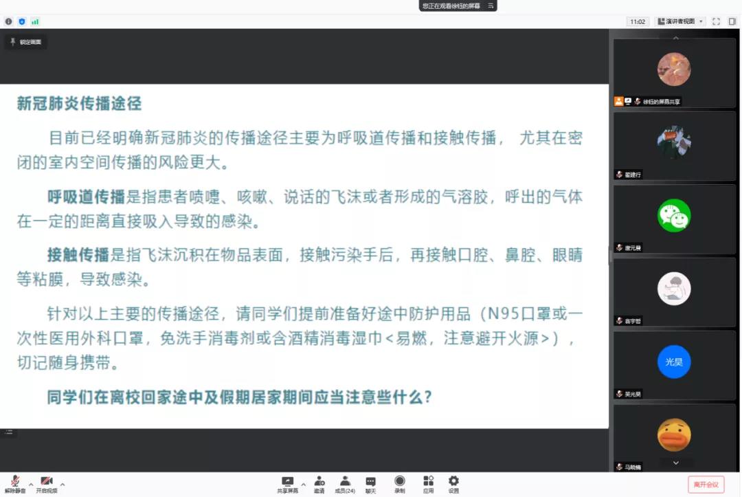 近期召开了线上防疫教育主题班会。