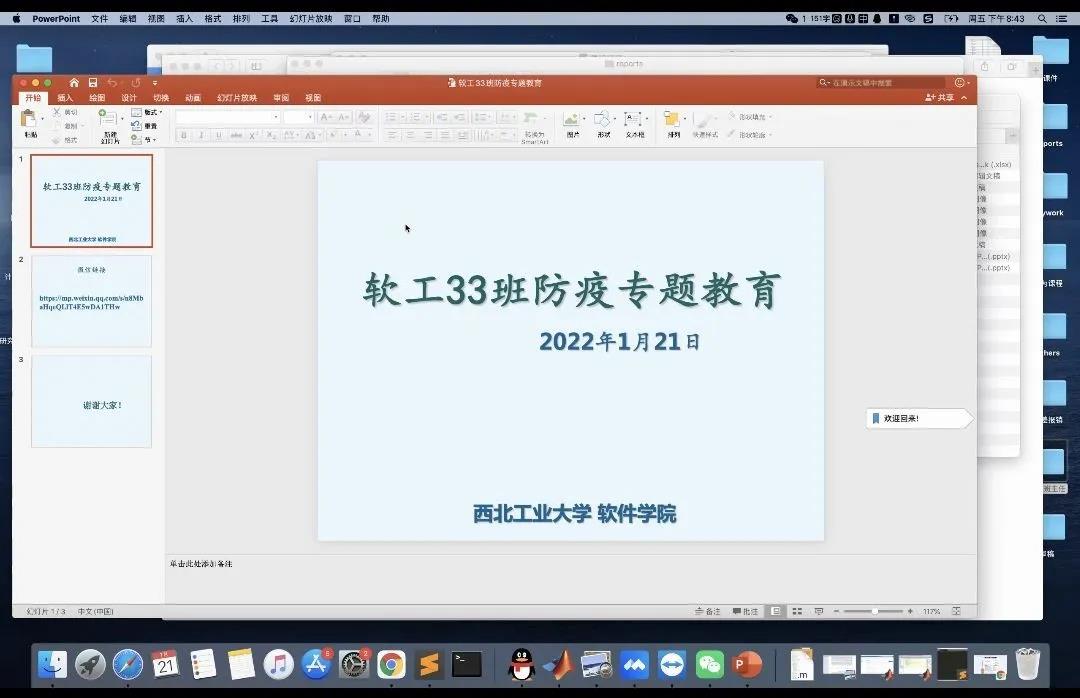 研究生同样地也接受了防疫宣传教育,强化了学生对新冠肺炎疫情的思想认识,提醒同学们在返乡过程中要注意的问题,所有同学均按时参与会议,认真学习了此次防疫专题教育,对今后如何更合理地进行防疫和保护自己及家人健康有了明确认识。