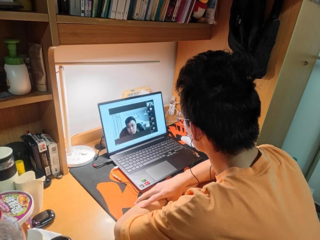 (在宿舍封闭期间认真开班会的同学们)