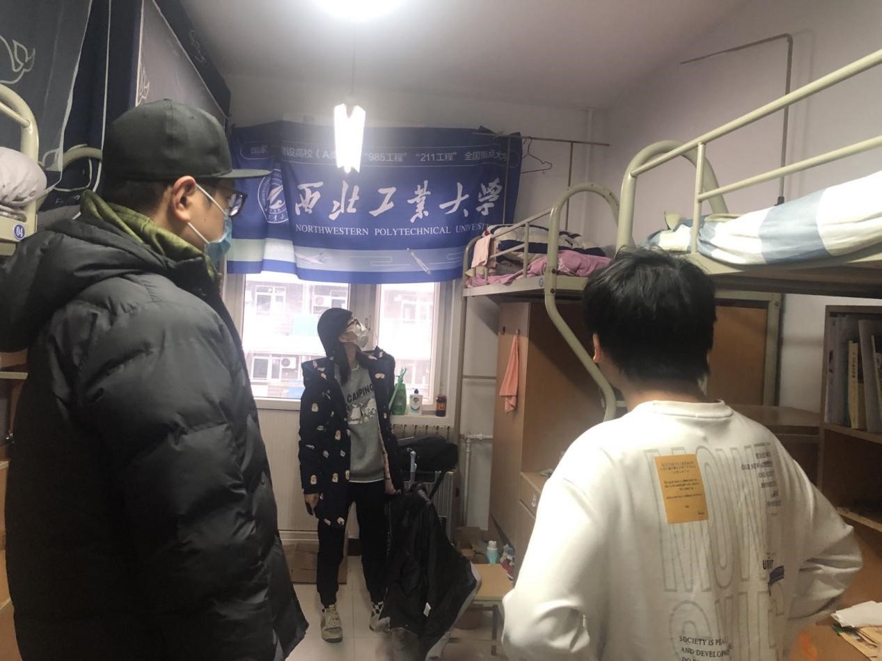 党委副书记张龙,研究生辅导员高利鹏、茹丽媛,本科生辅导员张欣颖、吕园走访长安校区留校学生宿舍,逐一看望因当地疫情防控政策等原因无法返家的学生,详细了解留校学生的实际需求和生活状况,关心关怀留校学生的生活和学习情况,并致以新年的美好祝愿,让留校过年的同学们感受到了学院学生工作的温暖。