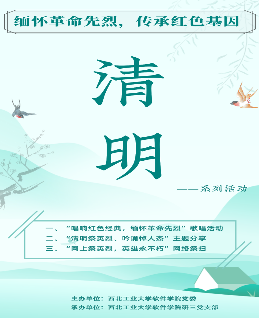 各学生党支部通过分享革命烈士故事、诗歌创作、诗歌朗诵等形式缅怀先辈、铭记革命先烈光荣事迹,学习革命烈士的大无畏精神。重读一个个红色故事,重温一个个光荣事迹,总是给人以震撼心灵的精神力量。信仰如磐,志坚如钢,英烈是历史天空中最闪亮的坐标,英烈精神如同熊熊燃烧的火炬,始终照亮我们前行的道路。