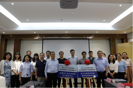 随后,田泽总经理与郑江滨院长代表双方签署合作协议,并共同为“安全关键领域智能微系统创新中心”“机载芯片及生态适航与工程化中心”揭牌。