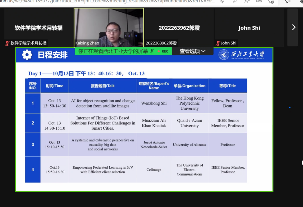 首先由凤卉介绍本次开幕式的流程及开幕式嘉宾,包括陈君仪教授、李海宽教授、史文中教授、Mengjie Zhang教授、Carlo Ghezzi教授、Muazzam Ali Khan Khattak教授、策力木格教授等共17位学者。