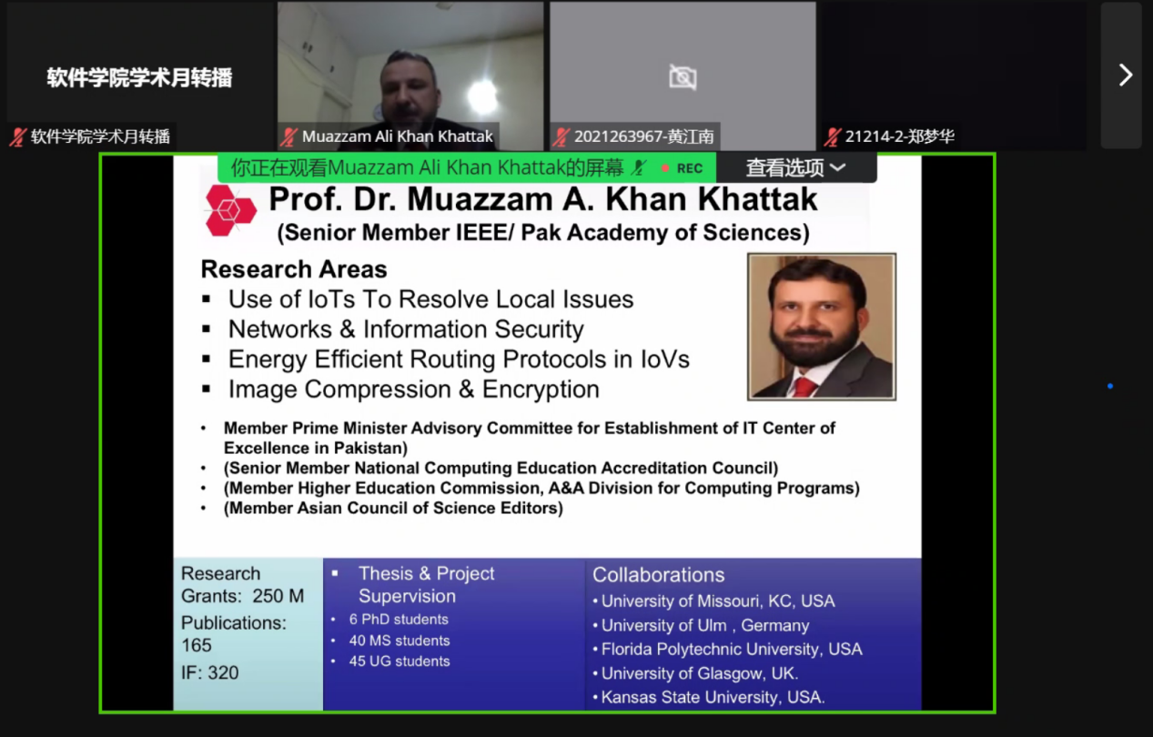 策力木格教授在题为《Empowering Federated Learning in IoV with Efficient client selection》报告中介绍了有效的客户选择增强loV中的联邦学习能力。主要研究领域为软件可靠性,软件老化和恢复,硬件可靠性,维修性等,在国际学术期刊公开发表学术论文176篇。