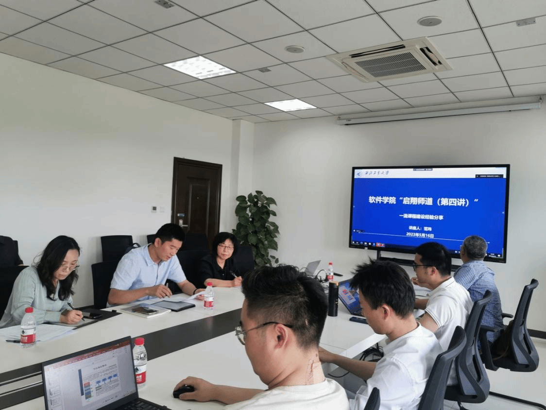 在启翔楼303会议室举办了“启翔师道”高质量教育教学专题系列讲座第四讲—“一流课程建设经验分享”。学院党委副书记(主持工作)李晗、教学副院长马春燕出席会议,学院西安教师和太仓教师分别以线下线上方式参加会议,会议由李晗主持。