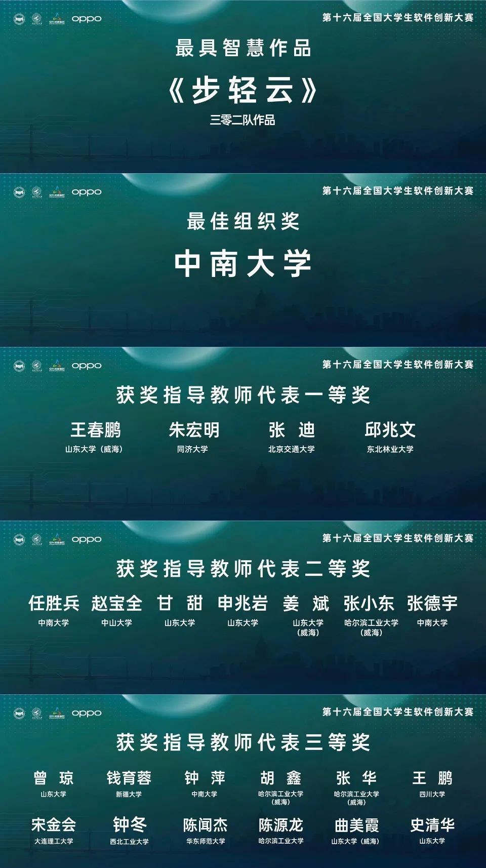 经过激烈角逐,最终大赛共产生一等奖队伍5支,二等奖队伍10支、三等奖队伍15支,还评选出最具智慧作品、最佳组织奖以及指导教师代表奖。