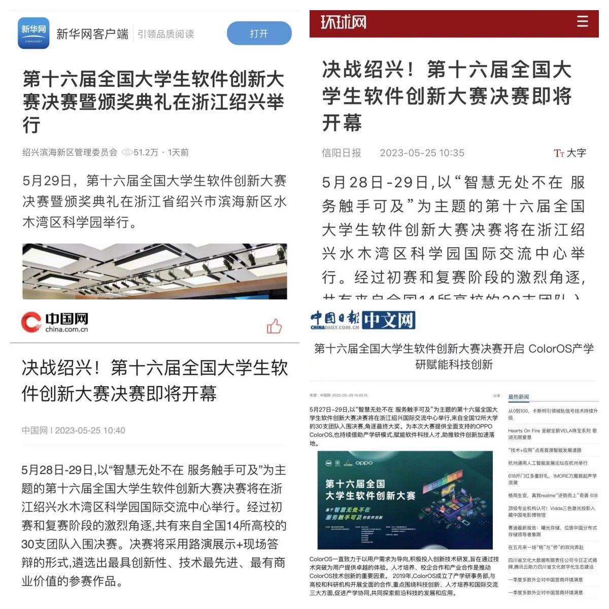 此次大赛吸引了多方媒体关注,新华网、环球网、中国网、中国商务新闻网、中国日报、北京青年网、浙江日报、潮新闻、绍兴市人民政府网、越牛新闻、绍兴电视台、绍广早新闻等50多家国家级省级和地方媒体争相报道,共同聚焦,浏览量超千万!