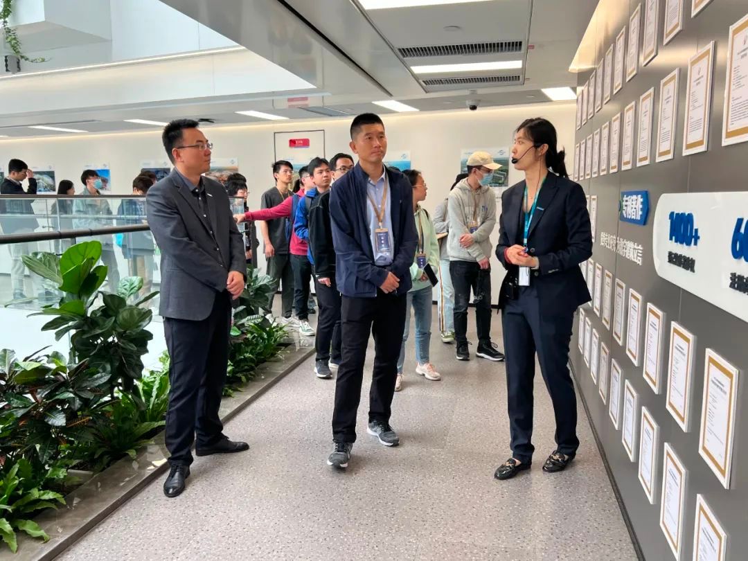 进入广联达西安数字建筑研发大厦后,广联达科技股份有限公司西安人力资源中心总监李超锋、人力资源经理房蕾、校园招聘经理张茂等工作人员带领学院一行参观了西安数字建筑研发大厦建筑,员工服务大厅,共享办公区,健身房等,同学们以第一视角了解企业深耕行业20余载的企业发展史、相关业务领域、企业自身核心技术自主权与专利著作。