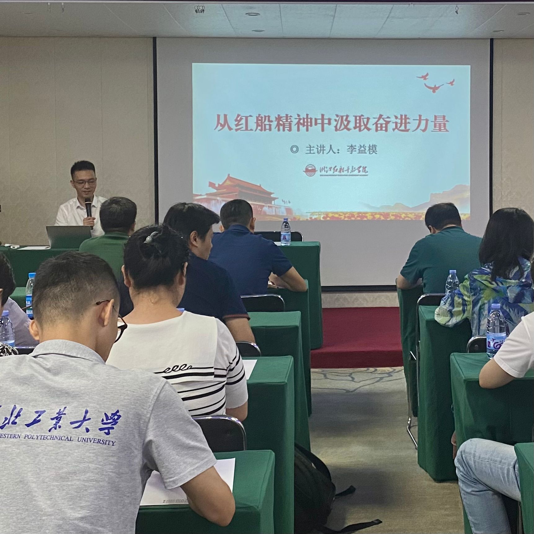 党委精心组织,特邀浙江红船干部学院、中共嘉兴市委党校副教授、嘉兴红船宣讲团成员李益模为大家上了一堂题为“感悟红船精神,汲取精神力量”的党课,从历史回眸、理论探讨、现实启示三个方面与大家交流了建党历史、“红船精神”内涵以及伟大建党精神的启示价值,启发党员做好新时代的信仰者、拓荒牛、实干家、逐梦人。