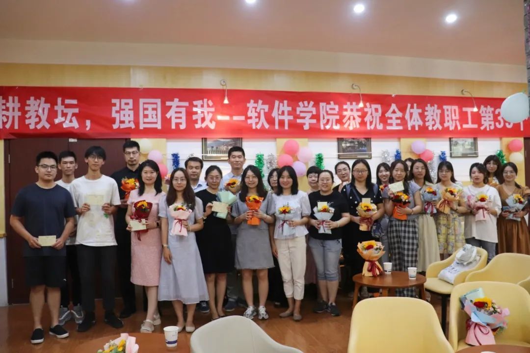 秋风送爽丹桂飘香,正值第39个教师节来临之际,学院举办主题为“躬耕教坛,强国有我”教师节表彰大会,表彰辛勤耕耘在教学一线及恪尽职守在院办服务的教师。为办好这次活动,学院提前策划布置,鲜花气球点缀,营造了温馨愉悦的会场环境。郑江滨感谢大家多年的辛勤付出并向学院全体教师致以节日的祝福。李晗宣读学校教育教学奖励获得者及学院2022-2023学年优秀教师称号获得者的表彰决定,学院领导为受表彰教师颁奖并合影留念。