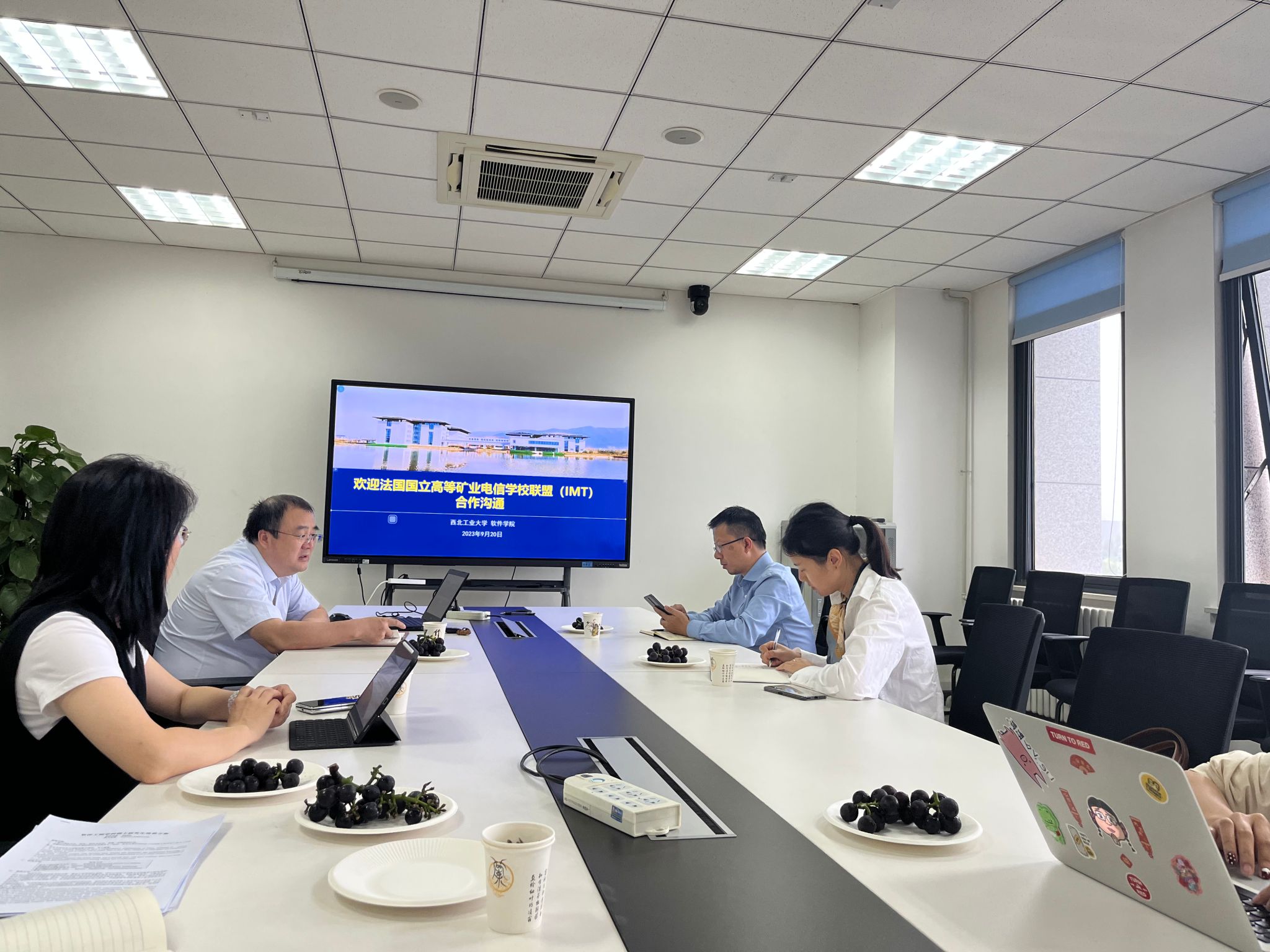 院长郑江滨,院长助理魏倩茹,国际化秘书凤卉等与外方就双方学生联合培养进行了交流。