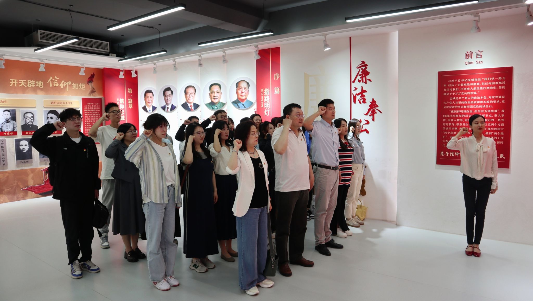参观结束后,在学院党委副书记陈博的带领下,大家重温入党誓词,字字铿锵,句句铭心。