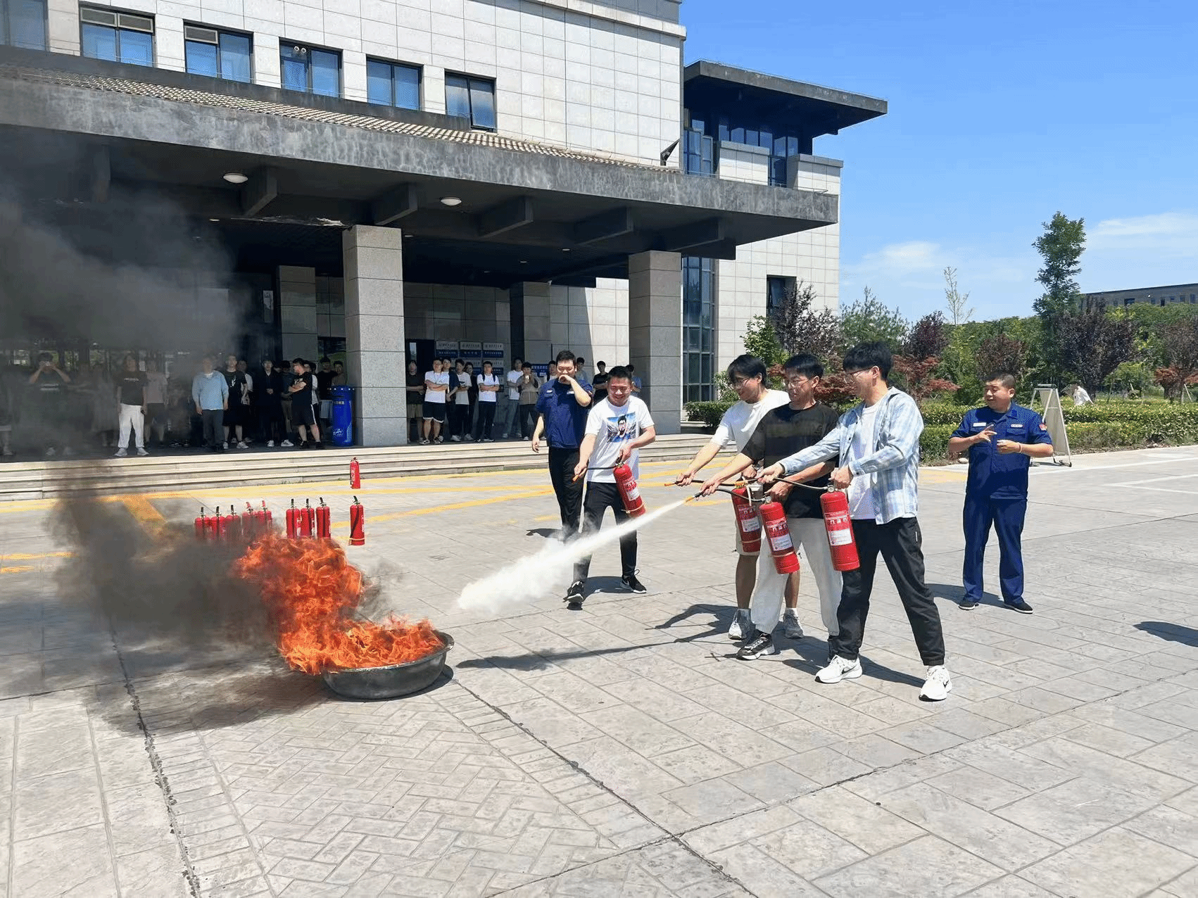 专题培训结束后进行了消防安全逃生演练,本次消防演练本着“安全第一、预防为主”的方针和“以人为本、生命至上”的理念,大家都能够按照“捂鼻、弯腰、靠墙走”的七字逃生要领,快速有序地撤离到安全区域。随后进行了灭火器使用实践演练,许磊老师就灭火器的正确使用方法和注意事项进行了现场讲解和操作示范,参训师生进行了实地操作。