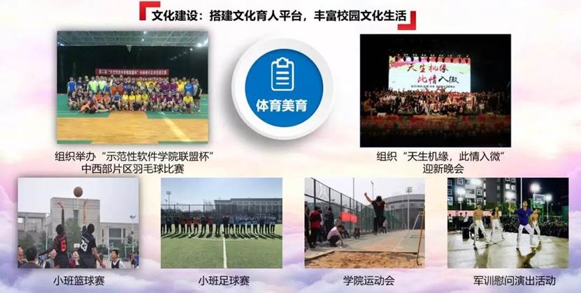 软芯微语-学院搭建文化育人平台不断丰富学生校园文化生活 学院团委指导学生会、社团、团支部针对“综合素质”“专业技能”“体育美育”三个方面开展丰富多彩的校园文化活动。 在提高学生综合素质方面成功举办校园诗词大会、校庆文化衫设计大赛等8项活动;在提升学生专业技能方面成功举办校园“debug”大赛、Python校园公开课等15项活动;在做好学生体育美育服务方面,成功举办“示范性91自拍