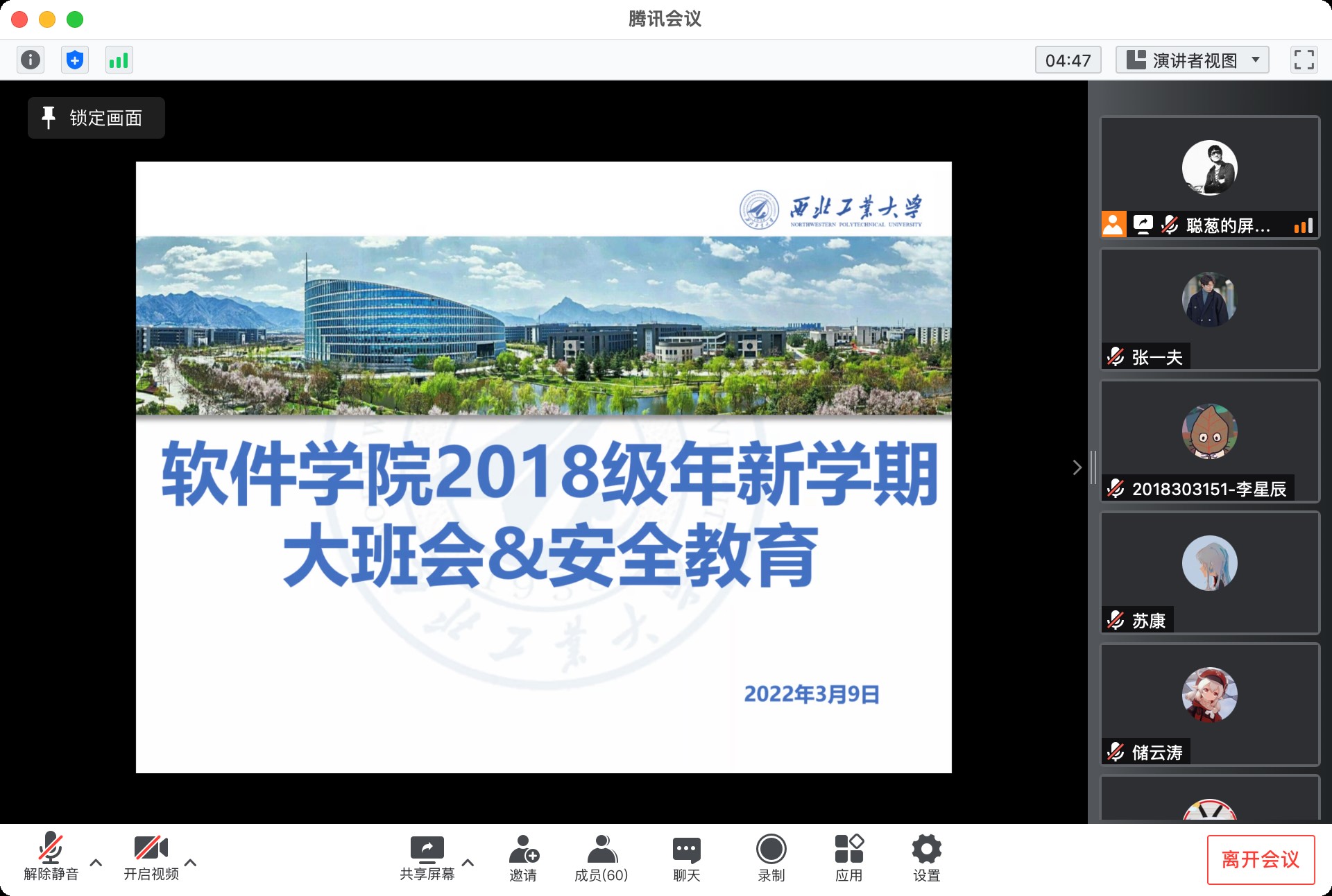 随着返校工作基本落下帷幕,各年级学期初的考试相继结束,同学们也迎来了新的学期。为贯彻落实学院疫情防控工作要求,做好疫情防控工作,增强学生疫情防控意识并帮助同学们定好学习计划,充分认识自我,但由于近期西安再次出现疫情,原定召开的各年级新学期大班会和安全教育会议改为线上进行。