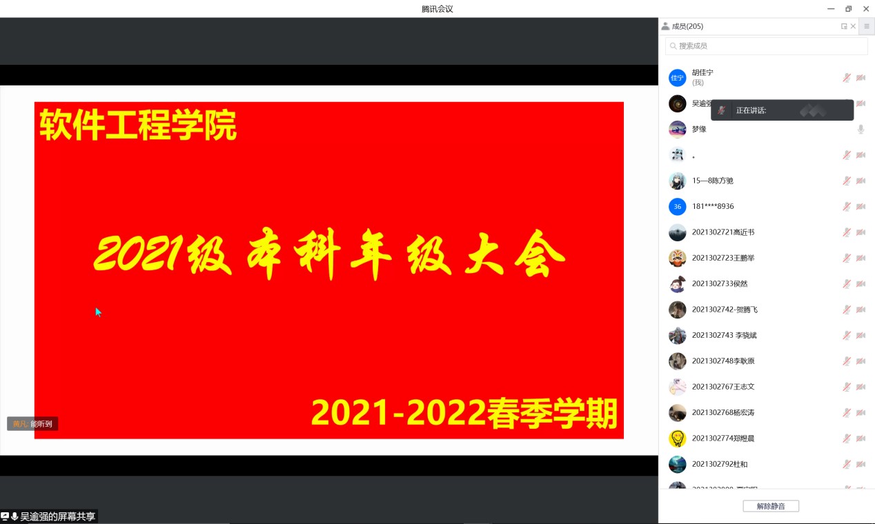 团委书记兼2020级辅导员张欣颖做出的讲话也代表了学院的要求,她详细向同学们普及了新冠病毒特点、传染途径和防控方法等内容,要求同学们一定要从思想上提高认识,时刻紧绷疫情防控之弦,做好个人防护措施,科学佩戴口罩,勤洗手,保持1米安全社交距离;及时按要求进行核酸检测,积极接种疫苗;理智对待疫情,做到不信谣、不传谣、不造谣,理性应对疫情形势;保持良好心态,避免不必要的焦虑和恐慌。