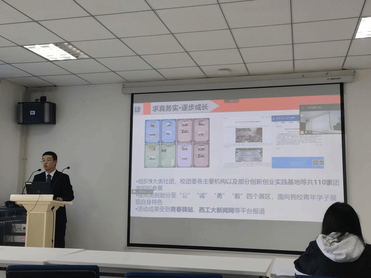 随后,先进团支部代表进行答辩。14012109团支部的团支书韩莹围绕支部的建设、管理、活动和未来展望展开答辩,详细讲述了支部的日常工作、学习活动、专题会议、学风建设等工作。之后,王俊豪、白梦娇、陈军、王硕等代表也代表各自的团支部进行答辩,无法到会的同学采取线上答辩的形式。张记国老师和胡雅心老师进行点评并提供建议,同学们都受益匪浅。