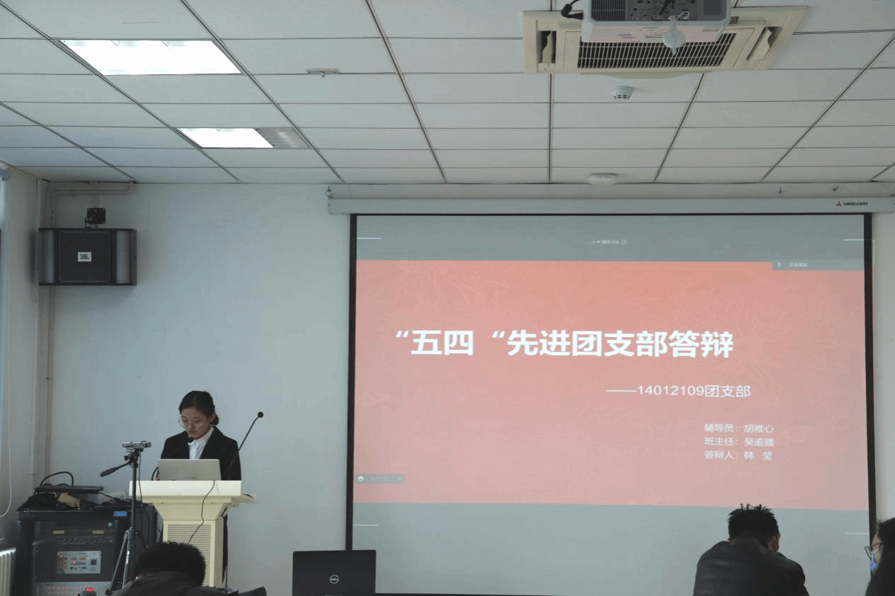 14012003班团支部的代表进行了五四红旗团支部的答辩,彰显支部团结友爱、作风优良、奋进与创新齐飞的精神,表现团员不忘初心、牢记使命,争做新时代的奋斗者的品质。