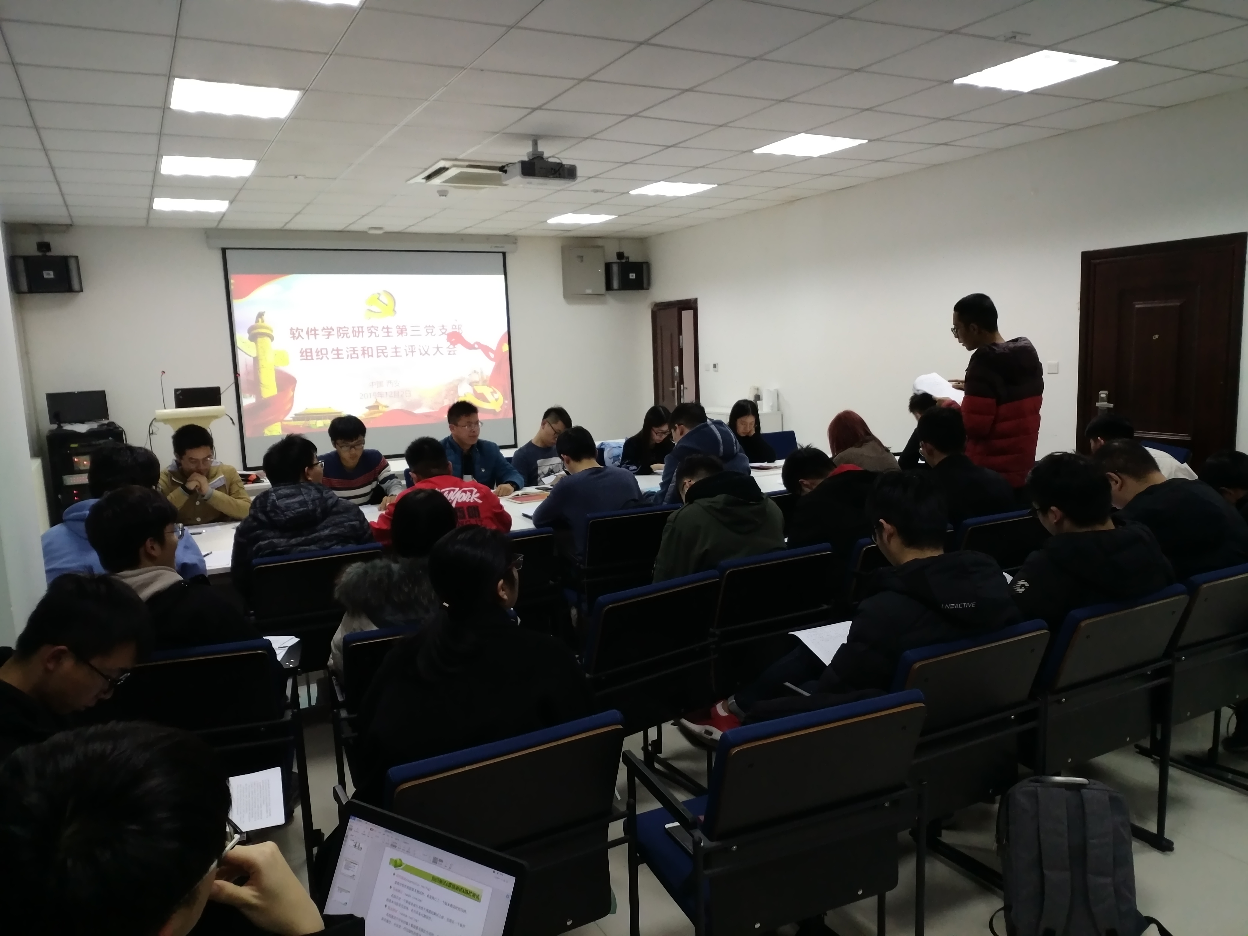 研究生第三党支部深入组织开展了支部委员间及与支部党员的谈心谈话,并于2019年12月2日晚在启翔楼401会议室召开了“不忘初心、牢记使命”专题组织生活会,同时开展党员民主评议工作。本次会议由支部书记胡轩豪同志主持,支部所有在校同志参加,2017级本科生辅导员陈智通老师列席会议。