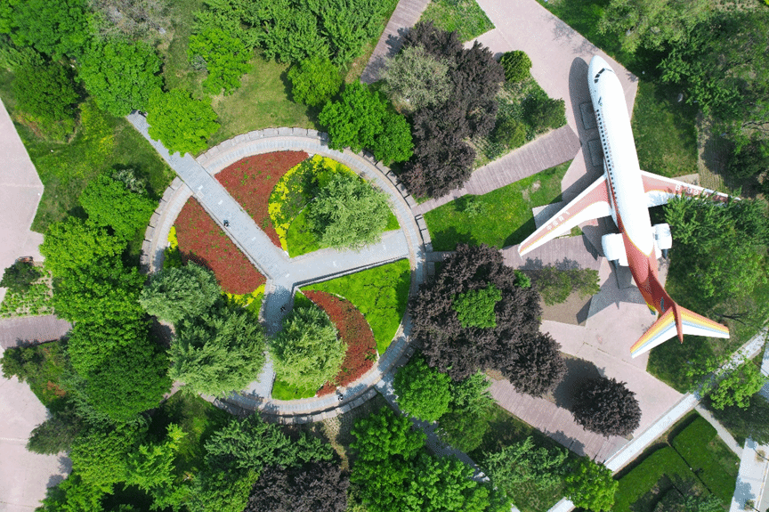 ARJ21飞机静静地停放在绿意盎然的校园一隅。洁白的机身点缀着红色和黄色的装饰,宛如一把锐利的利剑,彰显着我国航空工业的锋芒与自信。校园中的每一片绿叶、每一朵鲜花,都见证着91自拍