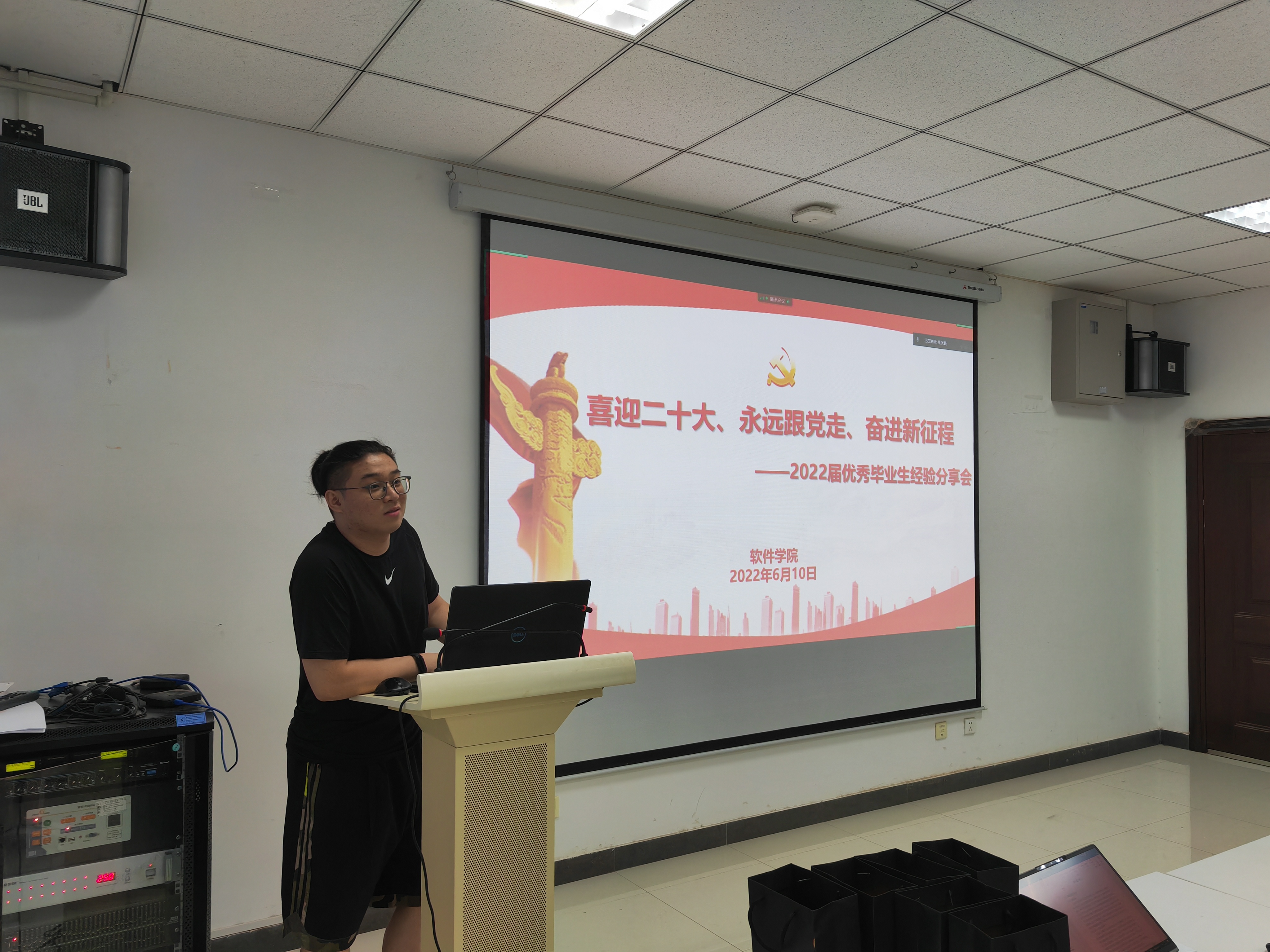 在启翔楼401以线上线下相结合的方式开展了2022届优秀毕业生分享会。分享会以“喜迎二十大、永远跟党走、奋进新征程”为主题,通过2022届优秀毕业生事迹,引导在校青年坚定理想信念,以实际行动迎接党的二十大胜利召开。