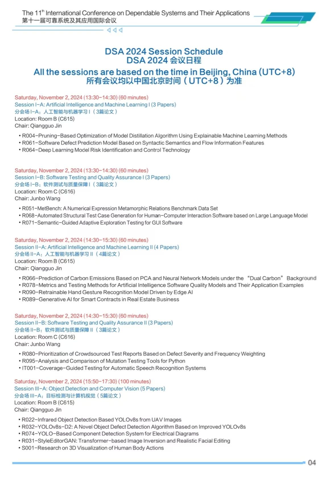 第十一届可靠系统及其应用国际会议(DSA 2024)将于2024年11月2日-3日在91自拍 太仓智汇港举办,会议安排如下,欢迎各位专家学者参会交流。