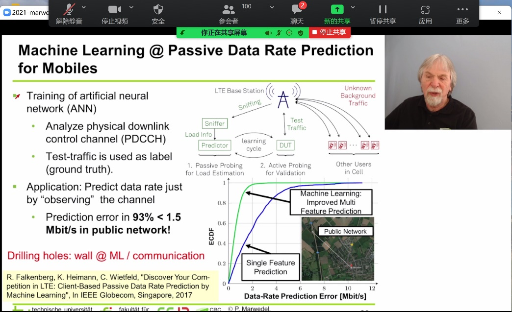 院长郑江滨教授代表承办单位致辞。会议邀请IEEE Fellow/DATE Fellow、ACM SIGDA杰出服务奖、EDAA终身成就奖以及ESWEEK终身成就奖获得者,多特蒙德工业大学Peter Marwedel教授以录制视频方式进行了题为“Enhancing cyber-physical systems with machine learning -Drilling holes into the walls between disciplines”的大会报告,受到与会者广泛关注和讨论。
